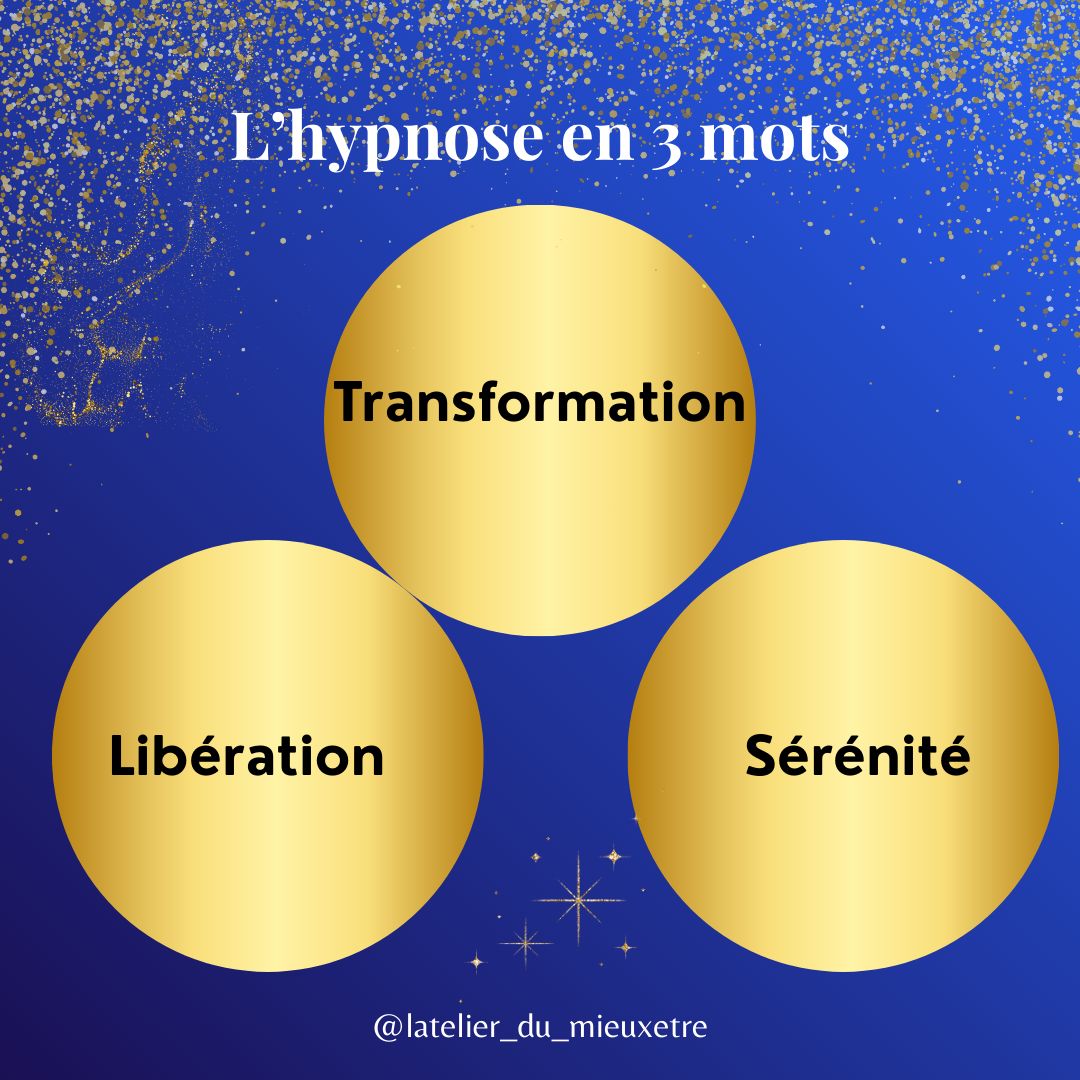 L’hypnose est un état modifié de conscience qui permet d’accéder à une forme de relaxation profonde et de concentration intense. Lors de cette expérience, la personne est pleinement consciente, mais son attention est tellement focalisée qu’elle devient plus réceptive aux suggestions et aux changements.